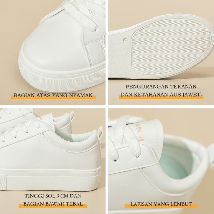 Promo VANSICO Sepatu Sneakers Wanita Casual Kasual Simple Premium Kekinian Kets Olahraga Cewek Putih