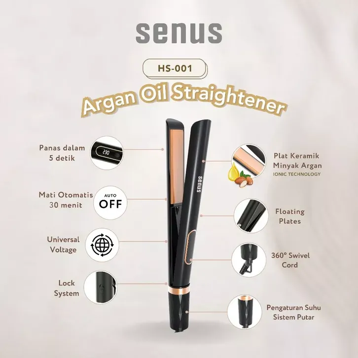 CATOKAN RAMBUT SENUS HAIR STRAIGHTENER CATOKAN PELURUS RAMBUT CERAMIC PLATE DENGAN MINYAK ARGAN TERMURAH