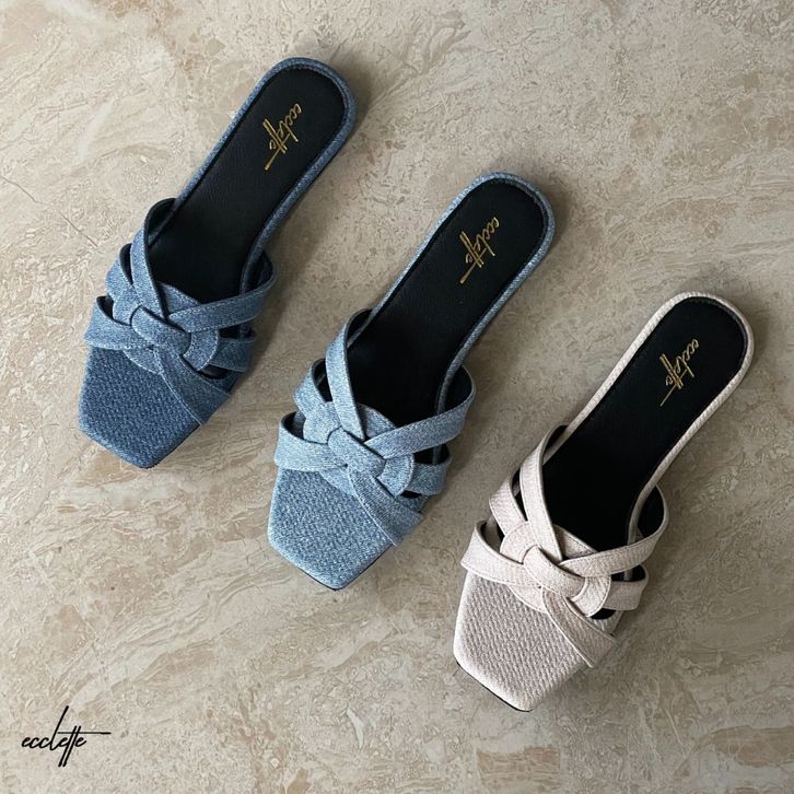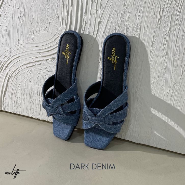 Sandal Flat Wanita Denim Kekinian Hits Teplek ECCLETTE - MILLA SLIPPER