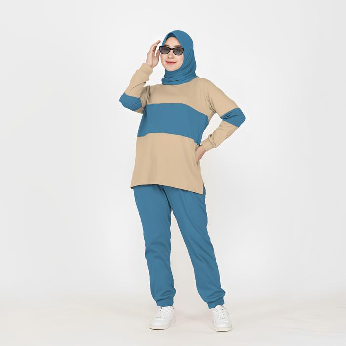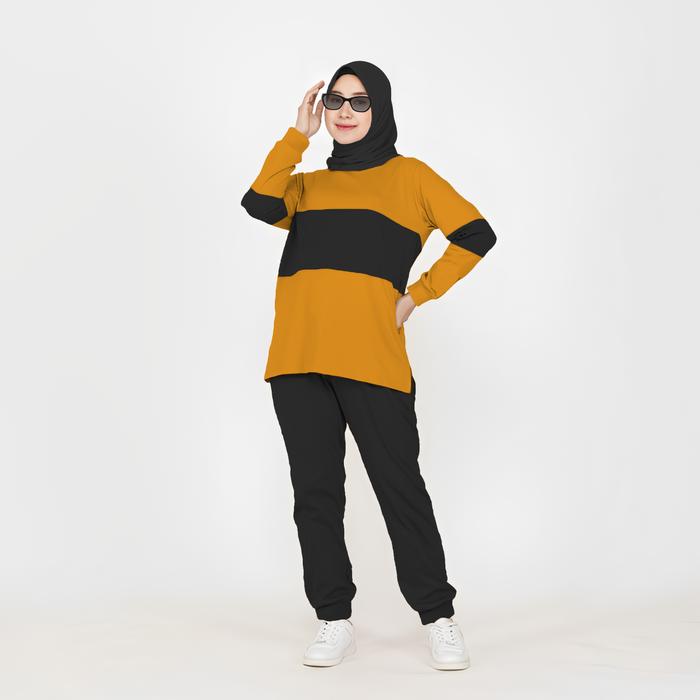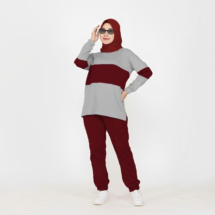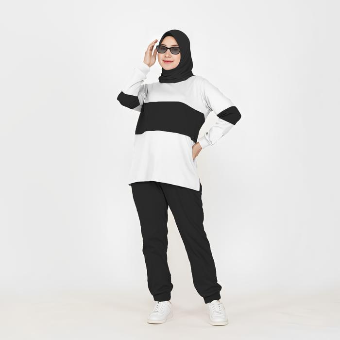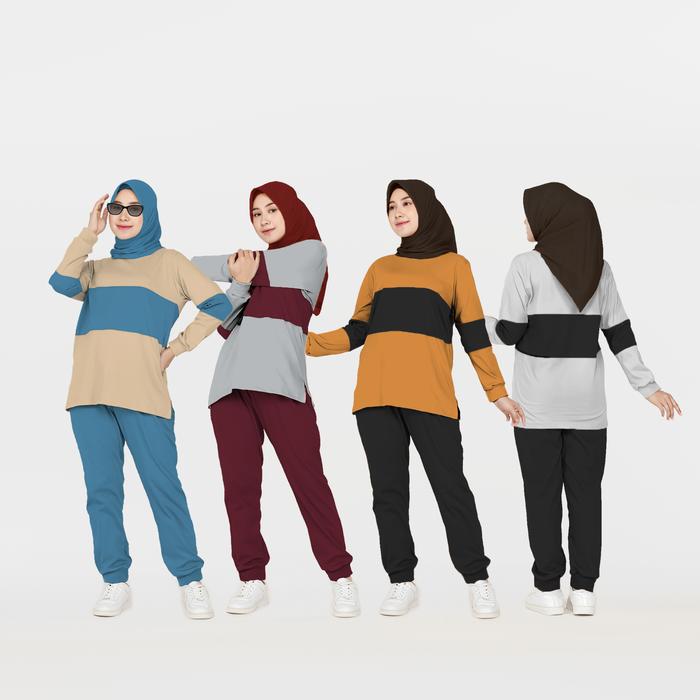 TANPA DP SET COMBI SETELAN KAOS CELANA OLAHRAGA WANITA MUSLIMAH KOMBINASI WARNA LENGAN PANJANG BAHAN BABYTERRY SIZE XL XXL XXXL35756 BAJU KAOS
