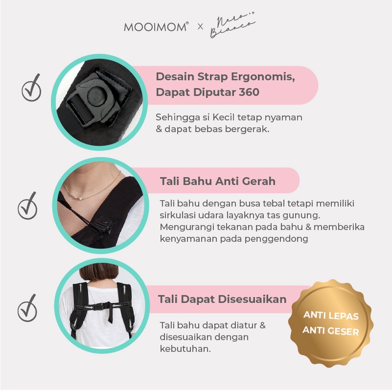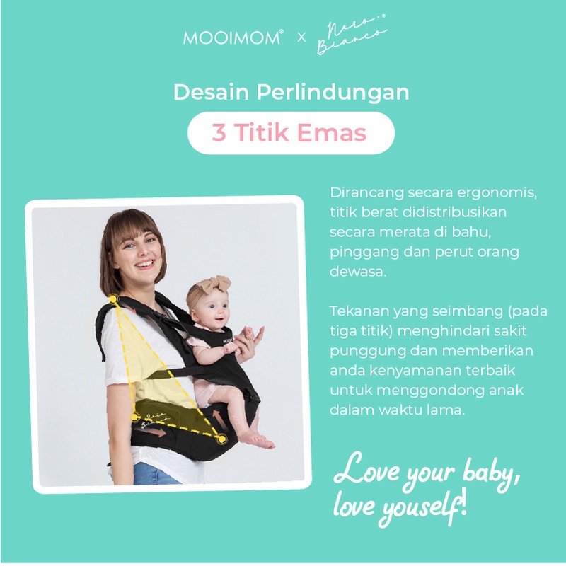 Gendongan Bayi Hipseat Kokoh - MOOIMOM X Nero Bianco Lightweight Hipseat Carrier