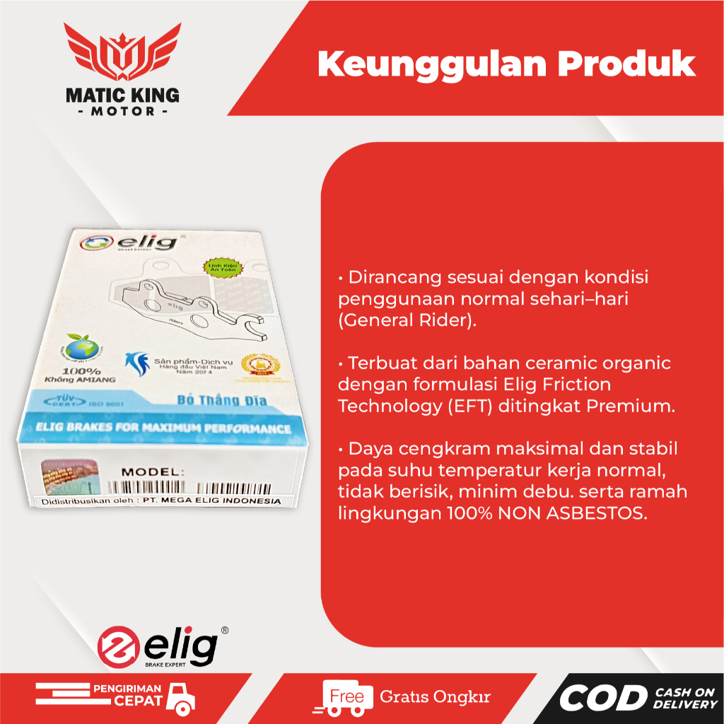 ELIG Paket Kampas Rem Dispad Discpad Depan Belakang Vario Genio Stylo 125 150 160 eSP New CBS EM381 SCM H18