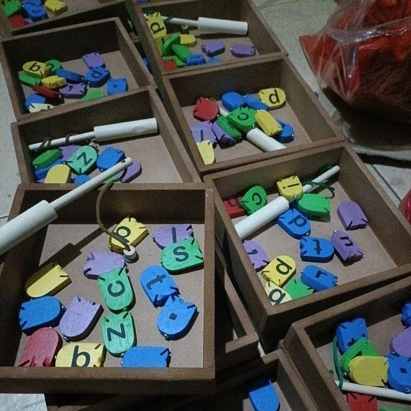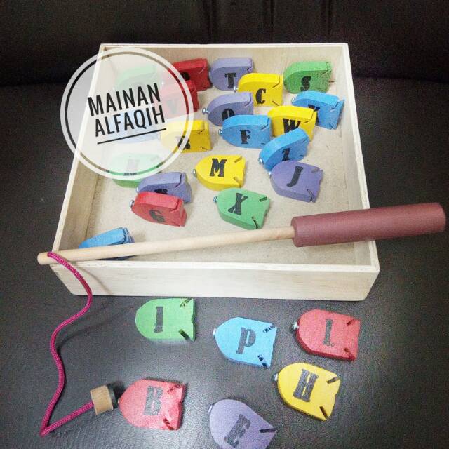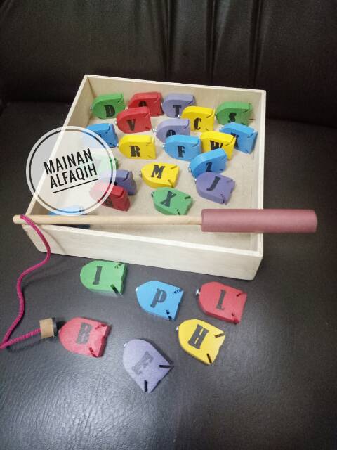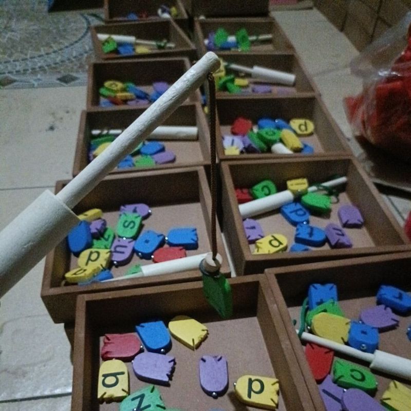 Mainan Edukasi Anak Memancing Huruf Ikan Mainan Magnet Huruf Wooden Toys