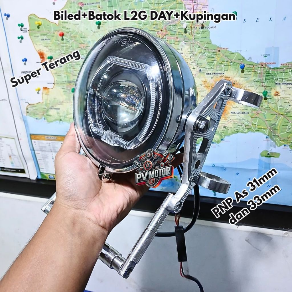 Lampu Depan Biled RGB Set Batok L2G Plus Kupingan PNP As 31mm Dan 33mm Import Build Up DAY PV Motor