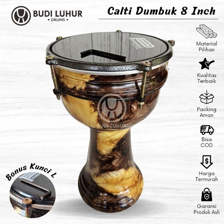 Calti Darbuka Fullset 8 inch Marmer Coklat Dumbuk Mika Power Beat Sholawat Hadroh Marawis Siap Pakai