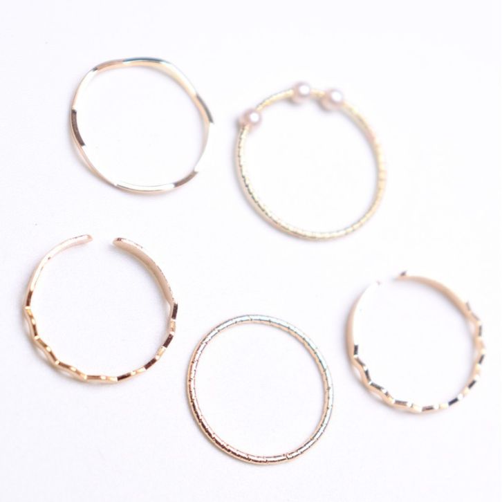 Perhiasan Wanita Cantik Korean Pearl Ring 5pcs Set Cincin Mutiara Gaya Korea Minimalis Elegan Alloy Paduan