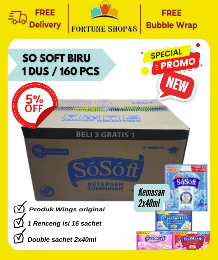 SoSoft 1 Dus Isi 10 Renceng 160pcs Detergent Cair - GRATIS ONGKIR