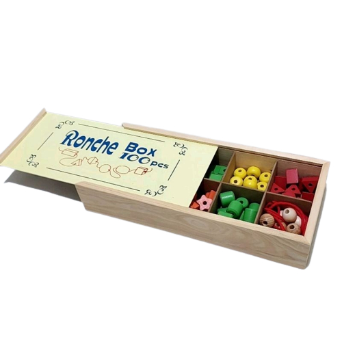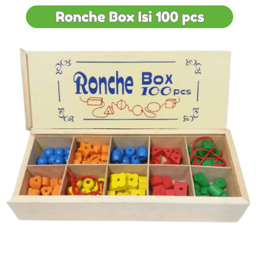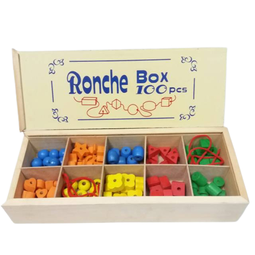 Mainan Edukasi Anak Ronce Box Balok Kayu Ronche Meronce Bentuk Warna isi 100 pcs