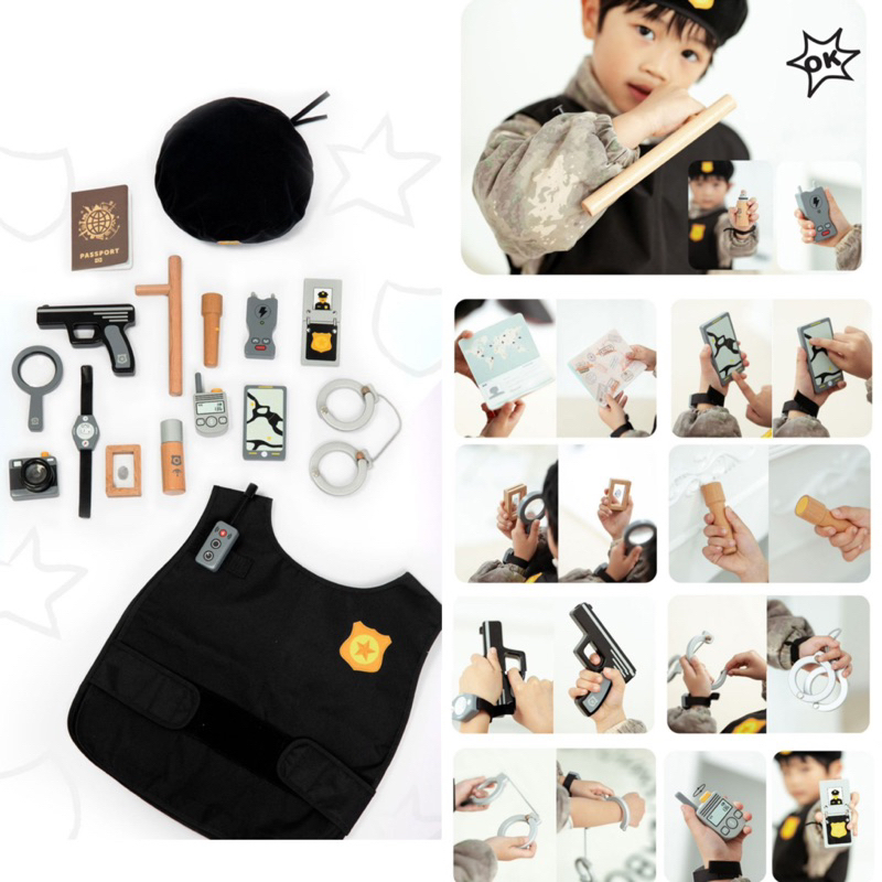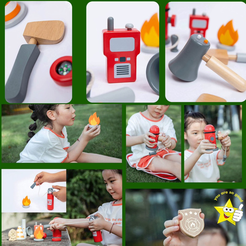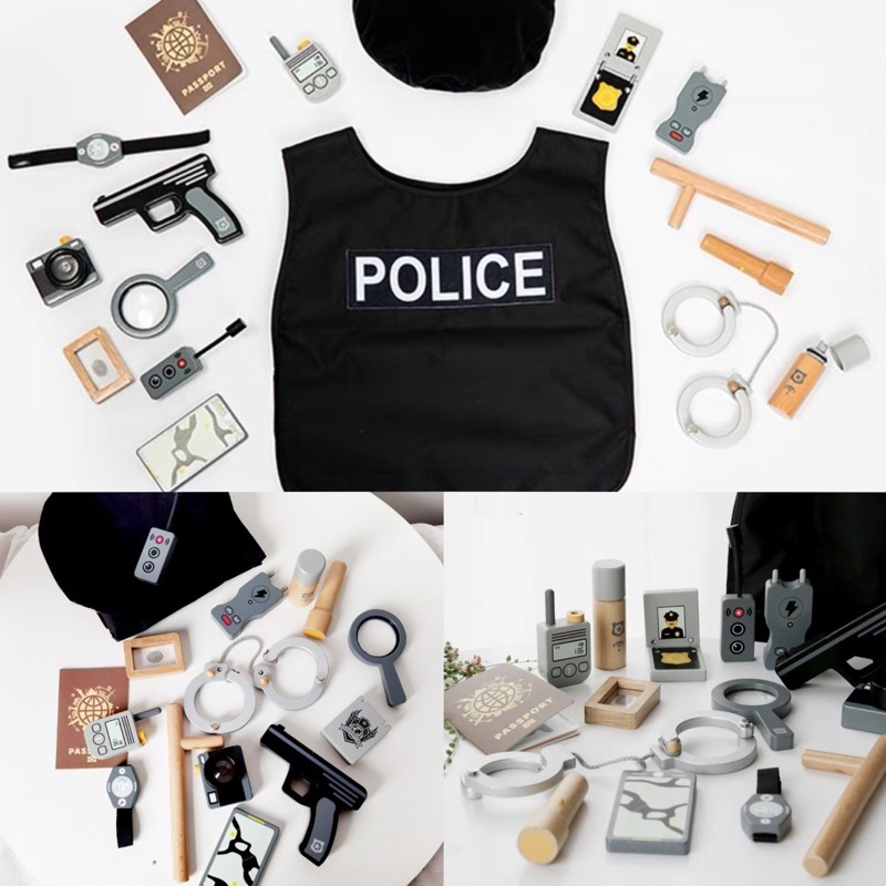 Umu wooden police fireman play set pretend plays kostum polisi pemadam kebakaran anak mainan peran anak