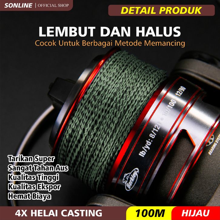 SON- Tali Pancing 100m Senar Pancing PE Sensor Brht Warna Hijau Sensor NEO+si2 Jepang Senar Pancing