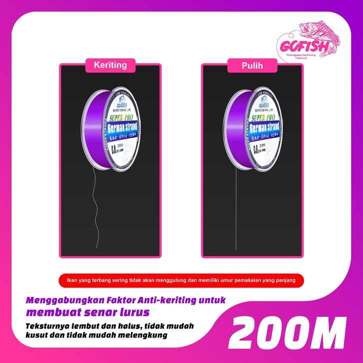 GOFISH Tali Pancing Germany200m Senar Pancing Premium Invisible Bahan Nilon Tahan Lama Panjang