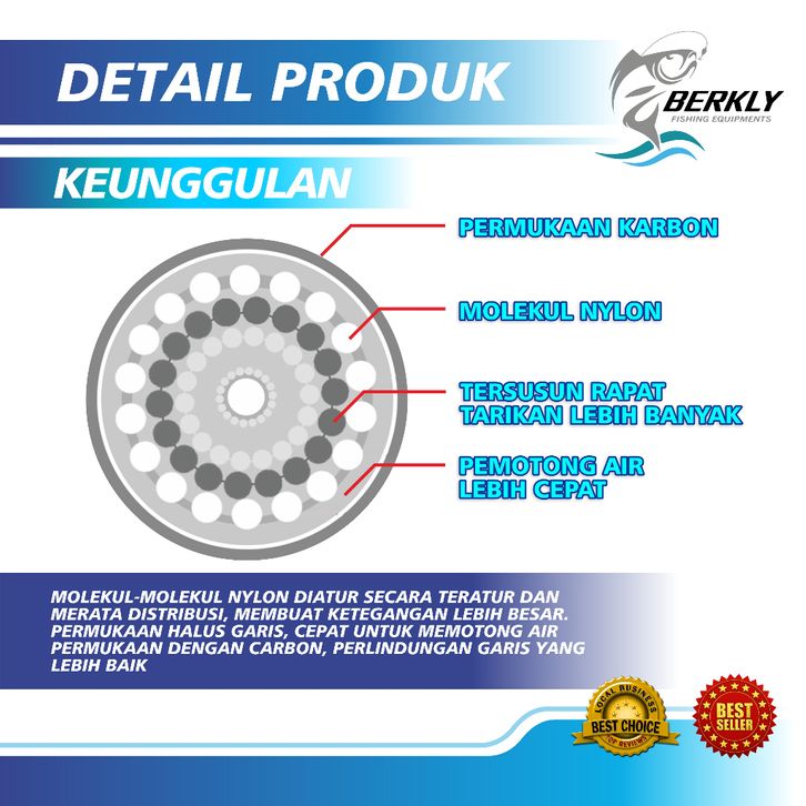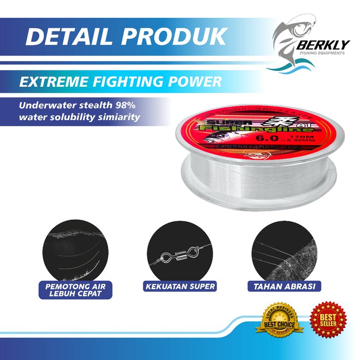 BERKLY Senar Pancing 110m Super Strong 100% Fluorocarbon Fishing Senar Pancing Kuat Bahan Nilon