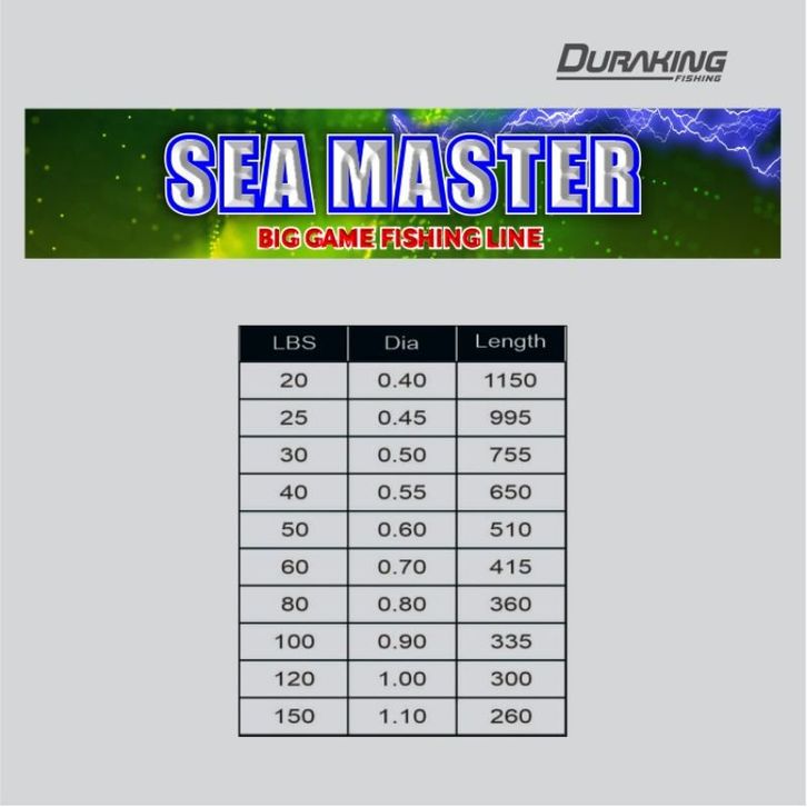 SENAR DURAKING SEA MASTER 20 25 30 40 50 60 80 LB 100 LB 120 LB 150 LB WARNA CLEAR WARNA CLEAR GREEN