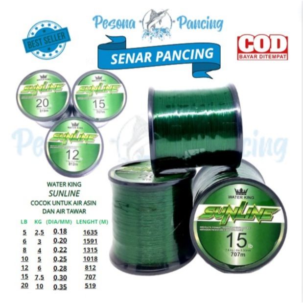 Senar Pancing Water King SUNWARNA HIJAU Cepat Tenggelam Tidak Keriting dan Super Ultra Lembut