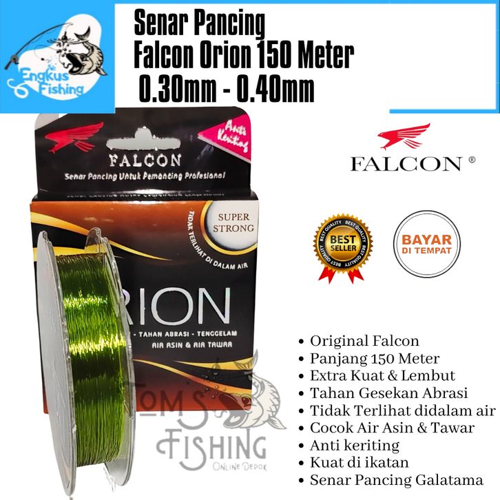 Senar Pancing Falcon Orion 150 Meter Hijau Yarite 0.16mm - 0.50mm Galatama Galapung Murah - Engkus