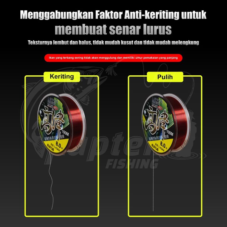 Pancing Gaojian Senar Pancing 100m Bahan Nilon Tahan Getaran Halus senar pancing kuatsenar pancing