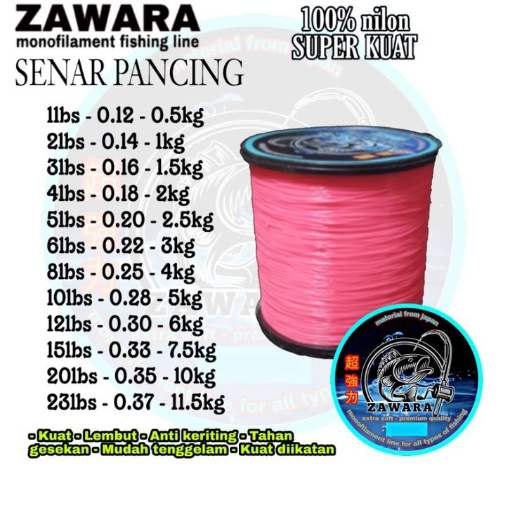 Senar oancing super kuat anti keriting warna Pink ZAWARA Fishing