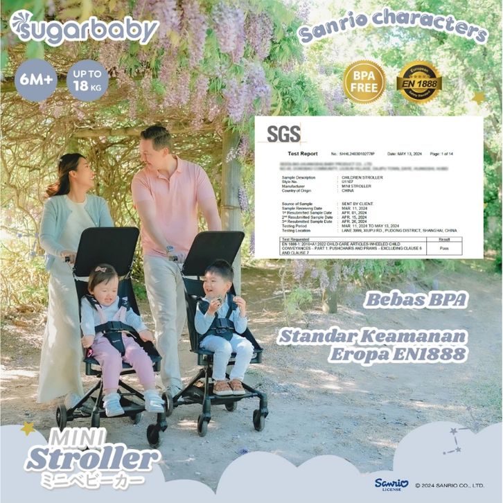 stroller bayi lipat travelling Sugar Baby Mini Stroller Sanrio Kuromi Melody Cinnamoroll / Kereta Dorong Bayi Lipat / F