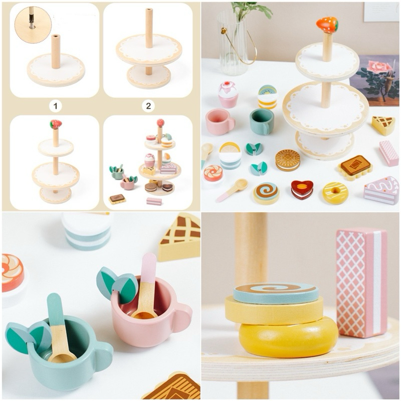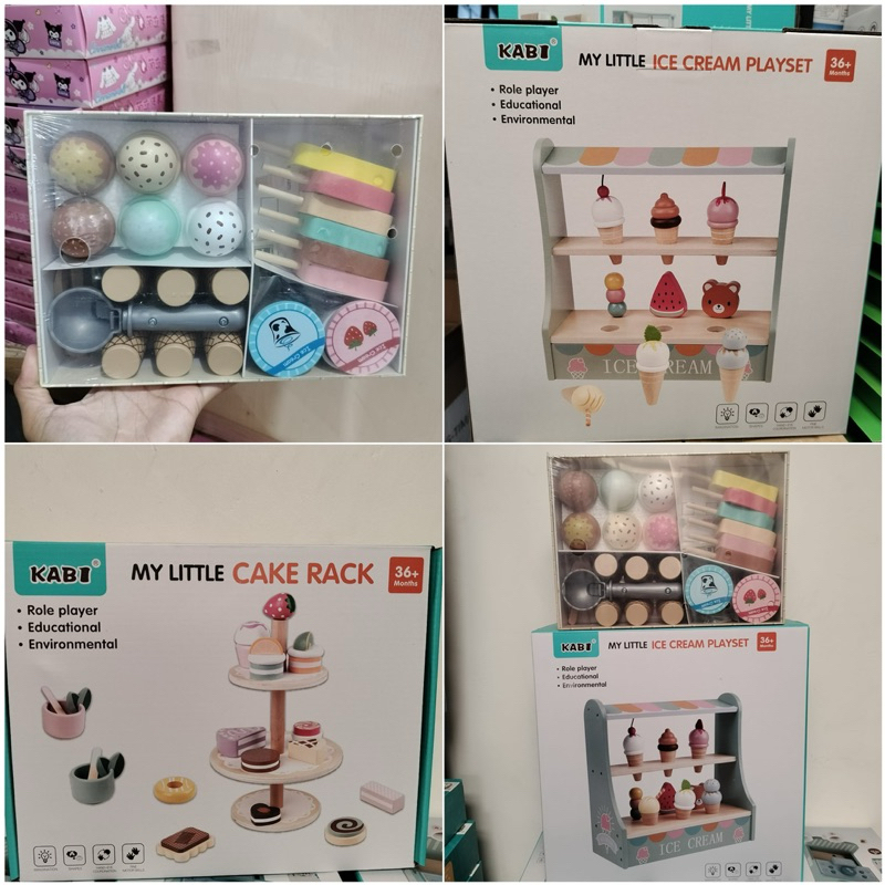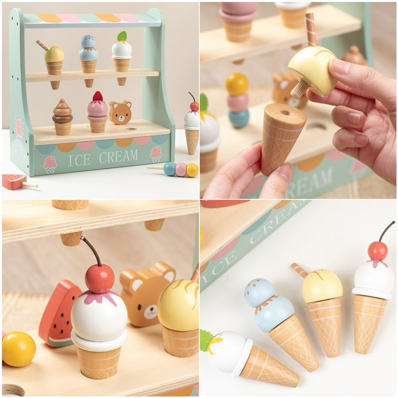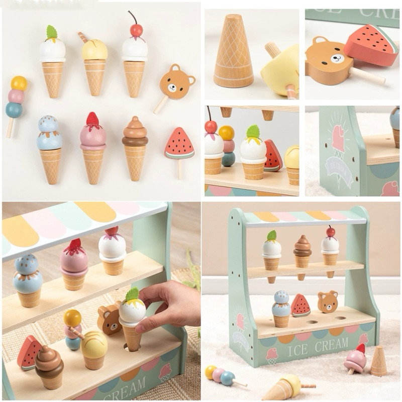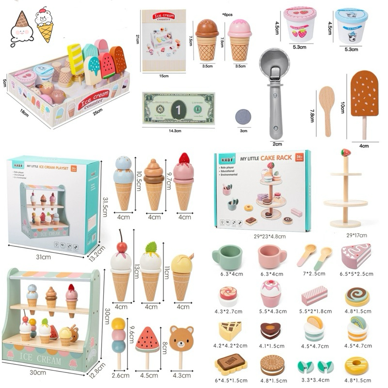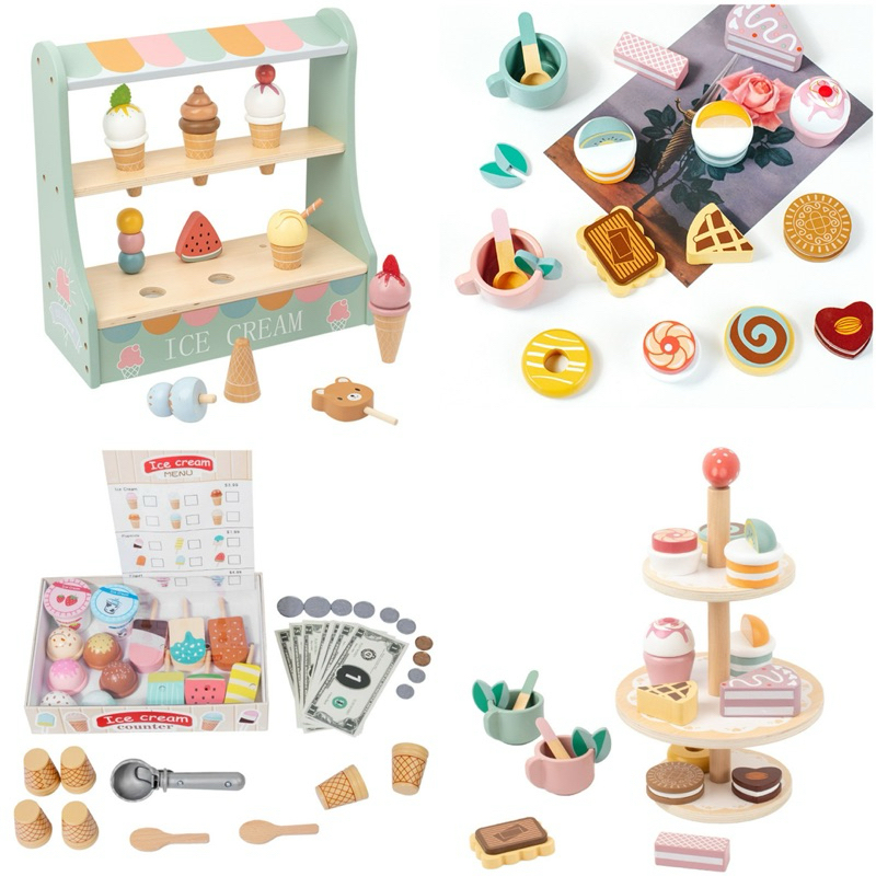 Wooden Ice Cream Cake Party Dessert Toys Mainan Kue Es Krim Pretend Plays
