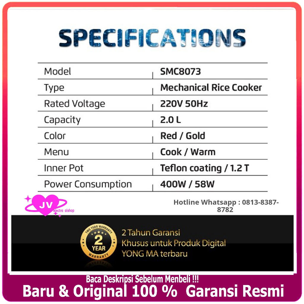YONGMA SMC8073 (2L) & YONGMA SMC7083 (1,8L) / Magic Com Yong Ma Smc-8073 Yongma Rice Cooker 3in1 mejikom yongma 2 lite