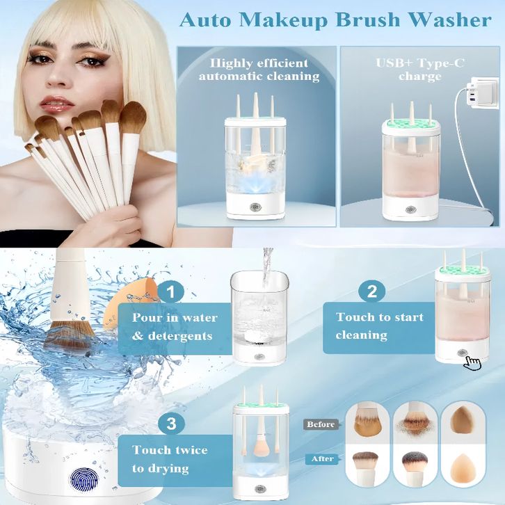 alat kecantikan wanita 3in1 Alat Cuci Brush Sterilisasi UV+pengeringan Makeup USB Pembersih Kuas Rias Listrik Makeup Br