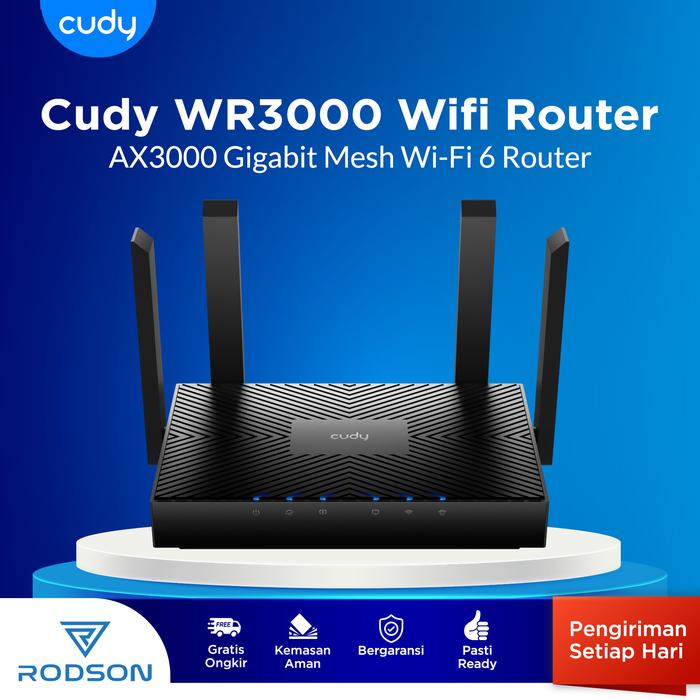 Router WiFi 6 Cudy WR3000 AX3000 – Kecepatan 2976Mbps, 4 Antena, Gigabit Port Dual Band Covers 130 m² (1,400 ft²)