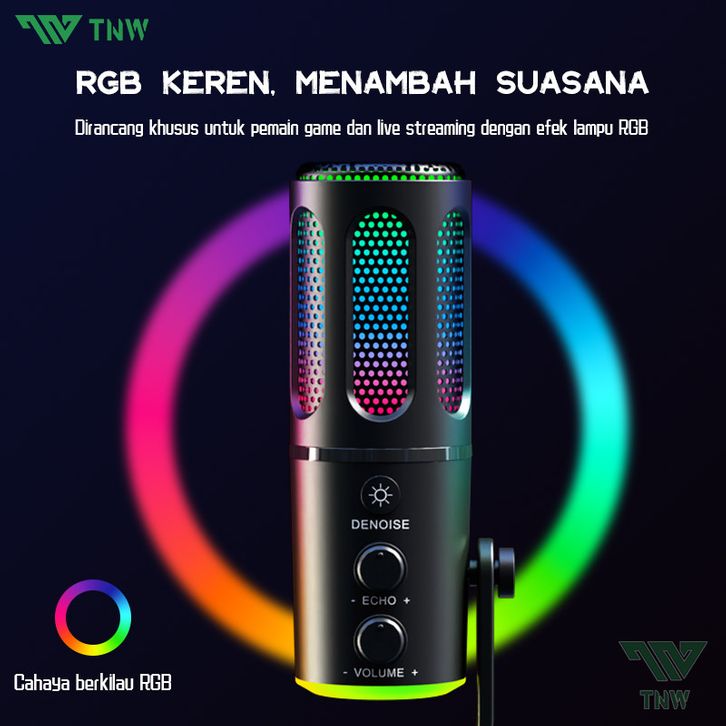 TNW K18 Microphone Condenser USB Type-C Mikrofon with RGB Dynamic Mic for PC Laptop Live Streaming Gaming Recording