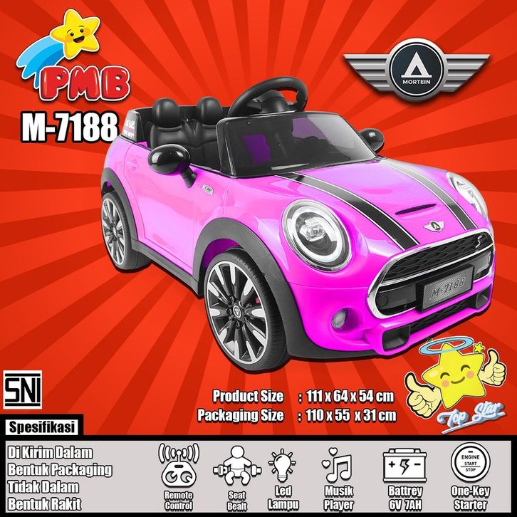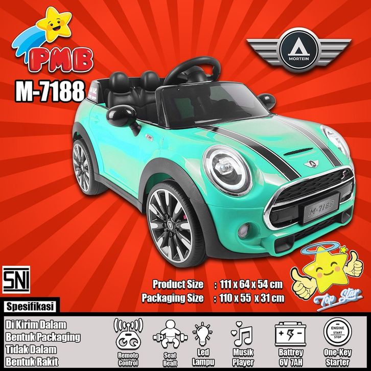 MAINAN ANAK MOBIL AKI Mini Cooper M-7188 PMB//MOBIL AKI ANAK BISA REMOT BLUETOOTH/KADO ANAK