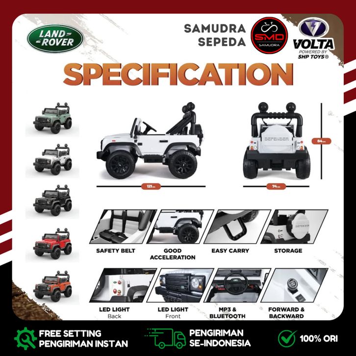 Mobil Aki Mainan Anak Remot S Volta 8 Land Rover Defender 90 12V 2 Dinamo Murah BDG