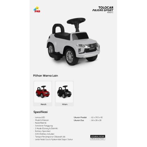 Mobil Aki Anak PMB Mobil Dorong & Aki Xpander Jeep Pajero CRV Tolocar K-601C 602C 603C 606C K601C