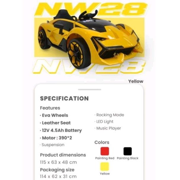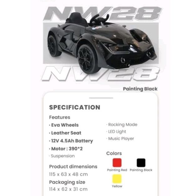 Mobil aki anak Nuwa NW-28 NW28 NW.28 Lamborgini Terzo X Series