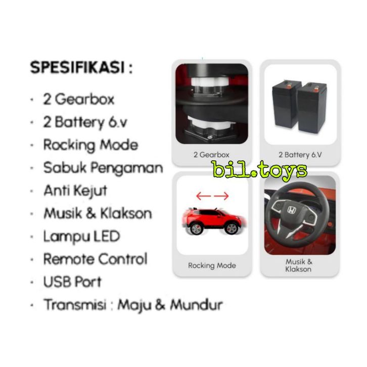 MOBIL AKI ANAK PMB 7788 HONDA CR-V MAINAN ANAK KENDARAAN AKI 12V CRV M 7788 DILENGK REMOTE CONTROL