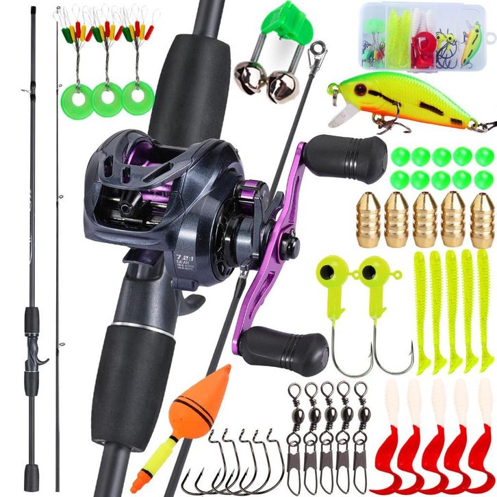 Sougayilang Set Pancing, 1.8m2 Casting Fishing Rod dan Gulir Rasio Perlengkapan 7.2: 1 Resistansi