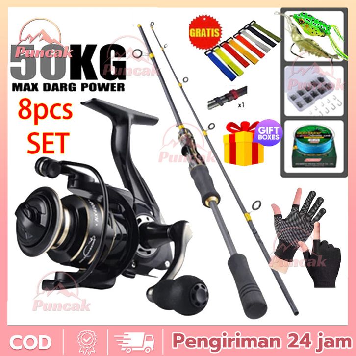 PUNCAKJoran Pancing Set Kuat Power 1.6M/1.8M/2.1M/2.4M Joran Murah Reel Gulungan NX2-7 30Kg Drag