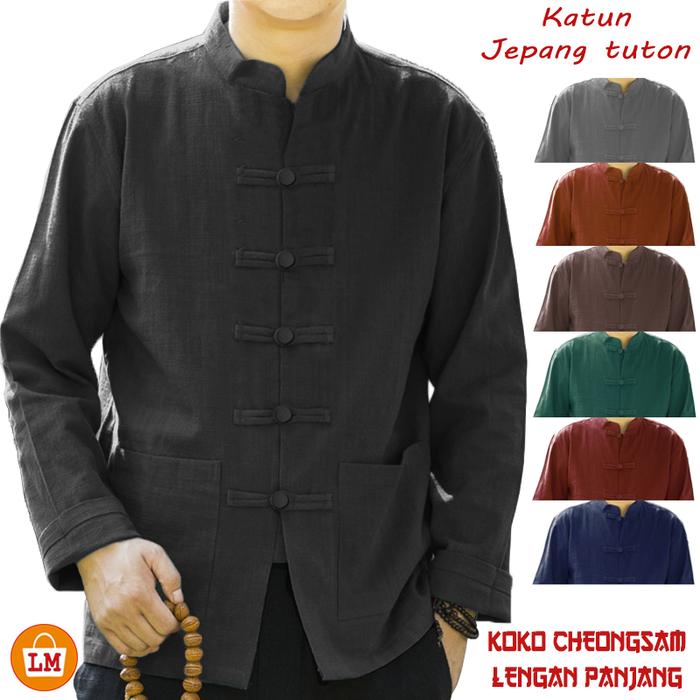 TANPA DP BAJU KOKO PRIA MUSLIM CHEONGSAM TUTON PANJANG IP MAN M3XL17152ABU TUA M