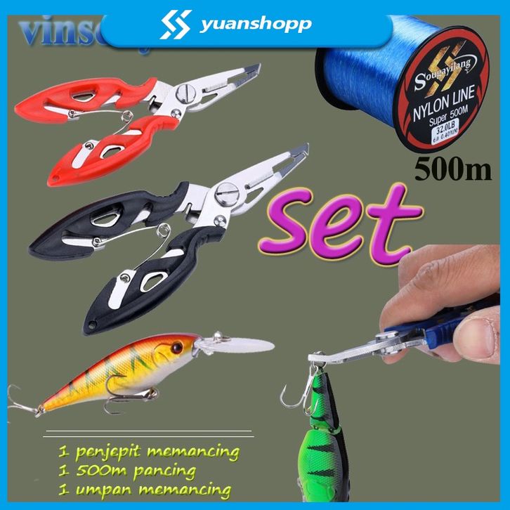 Set Pancing Senar Fishing Bait 1 penjepit memancing 1 m pancing 1 umpan memancing