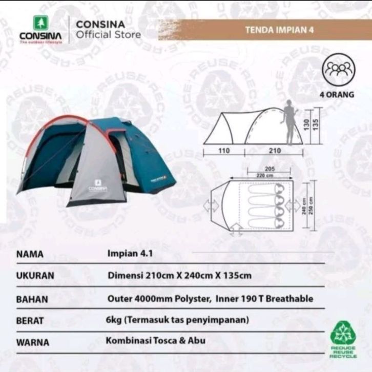 Tenda Camping TENDA MAGNUM 4 CONSINA KAPASITAS 2/4/6 PERSON TENDA CAMPING DOUBLE LAYER WATERPROOF TENDA KEMAH