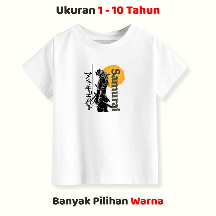 Kaos Anak Laki Laki Gambar Prajurit Tentara Japan Samurai Black Lengan Pendek Usia 1-10 Tahun