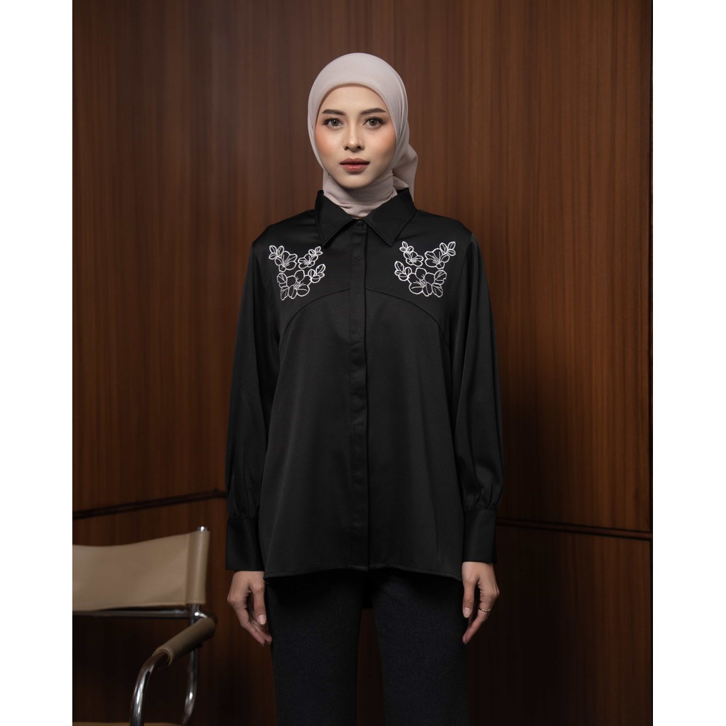 Mayoutfit Saelana Shirt | Kemeja Basic Wanita Aksen Bordir Floral Embroidery Original Best Seller Official Store