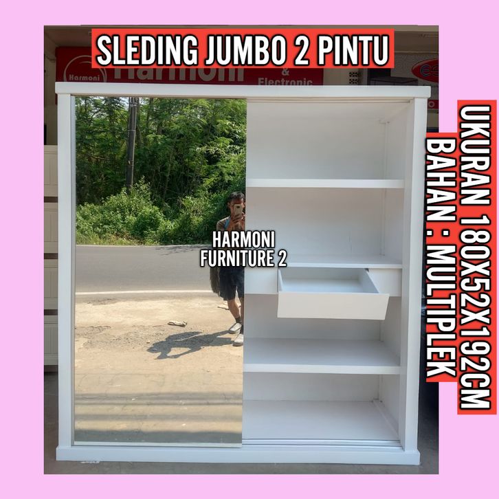 LEMARI PAKAIAN SLEDING FULL KACA JUMBO 180X52X192CM BAHAN MULTIPLEK FREE ONGKIR SERANG KOTA