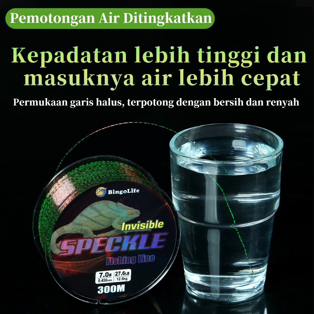 BingoLife Super Merah Tua Invisible SpeckleTali Senar Pancing 300m Fishing Line Tak Terlihat Gradien Maroon Lanjutan Bio