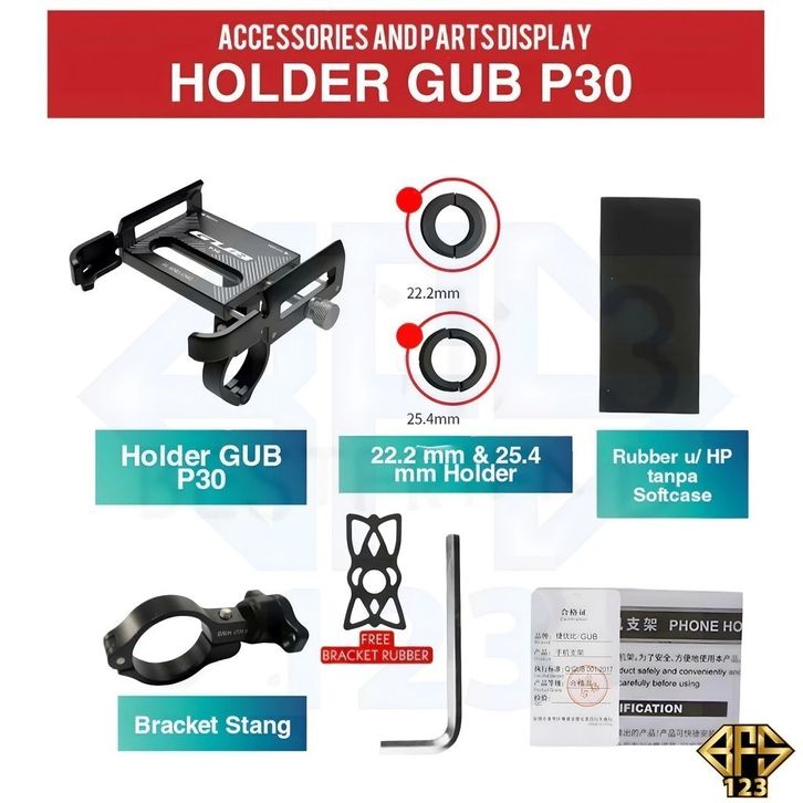 Holder Hp GUB GUB HOLDER P30 + BREKET Phone Holder Hp Sepeda Motor gub Alumunium Alloy Tempat Hp Dudukan Hp Sepeda