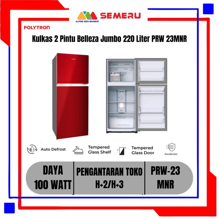 Promo POLYTRON KULKAS 2 PINTU 220 L PRW-23 MNR RED / PRW-23 MNX BLACK / PRW-23 MOB BLUE KHUSUS MAKASSAR Elegan