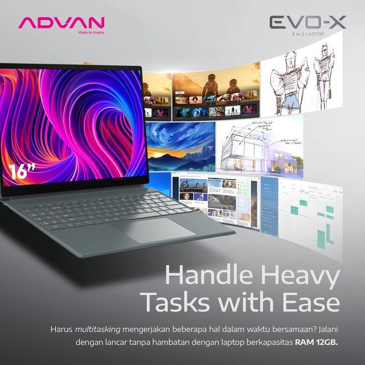Terlaris AdvAN Laptop 2 in 1 EVO-X 16 Intel Core i3-1215U Ram 12GB Ssd 512GB 16" 2.5K IPS 100 SRGB Windows 11 Elegan