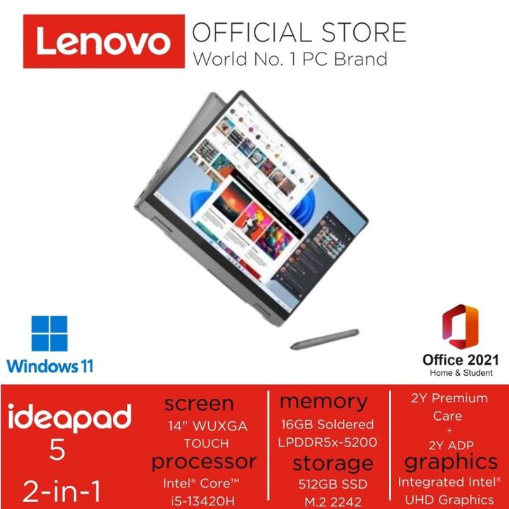 Murah LENOVO IDEAPAD 5 2-in-1 14IRH9-10IDLUNA9rEY/0YIDCOSMIC BLUE i5-13420H 16GB 512GB SSD Intel® UHD9raphics 14" WUXGA