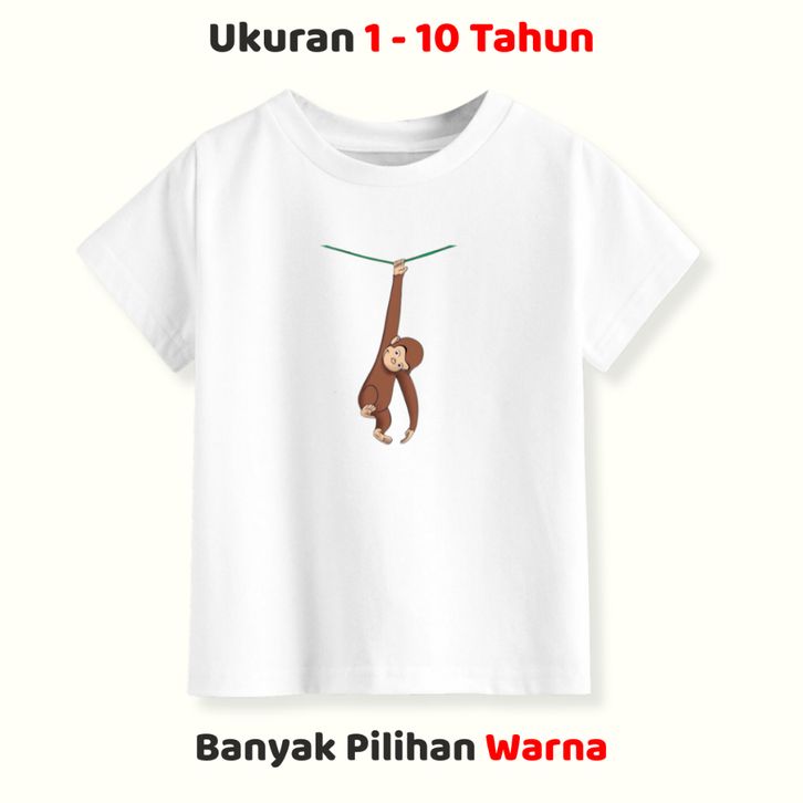 Kaos Anak Laki Laki Perempuan Gambar Monyet George Lengan Pendek Usia 1-10 Tahun