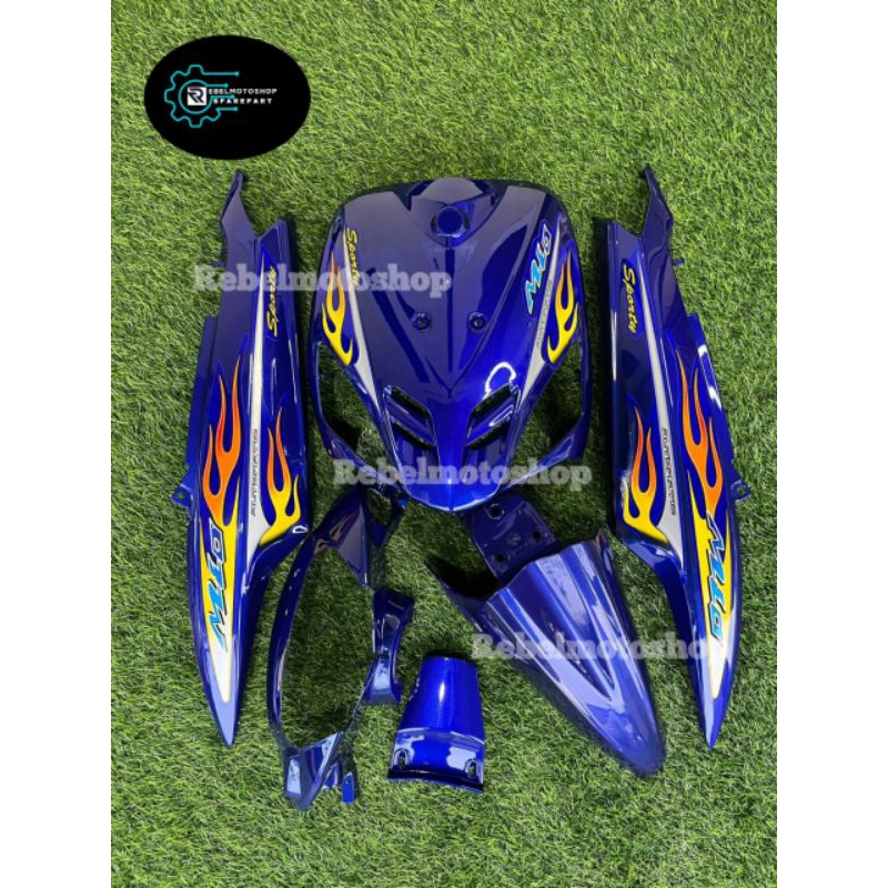 cover full body halus yamaha mio sporty biru plus striping mio lama