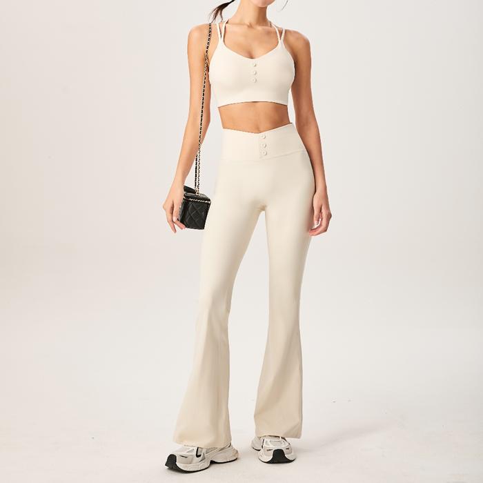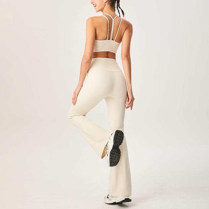 PREMIUM VELLA SPORTS BRA OR FLARED LEGGING Tennis Golf Sportswear Pilates Padel - IVORY BRA S