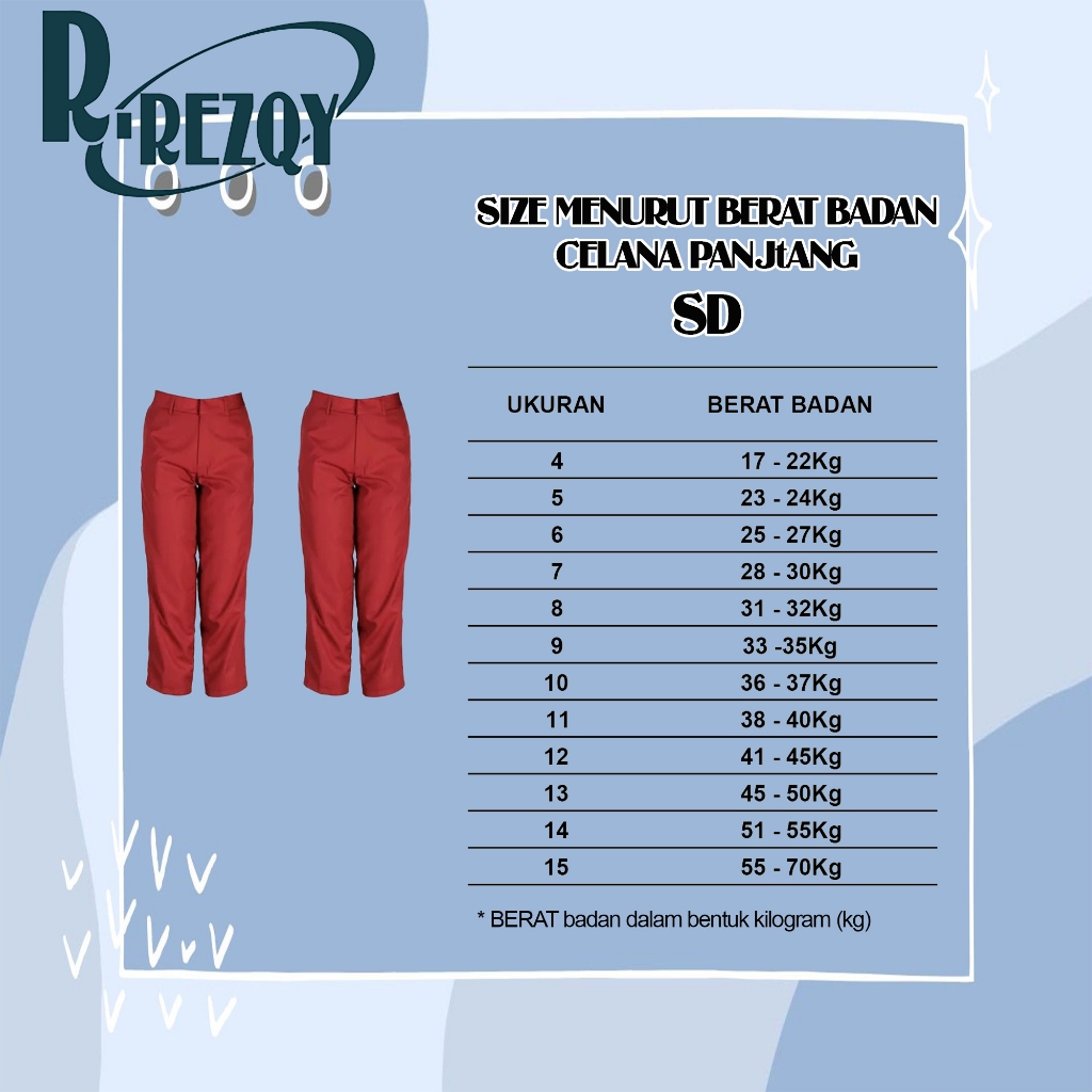 R REZQY - CELANA SD SERAGAM SEKOLAH SD PANJANG CELANA WARNA MERAH PUTIH HITAM PRAMUKA HIJAU MI