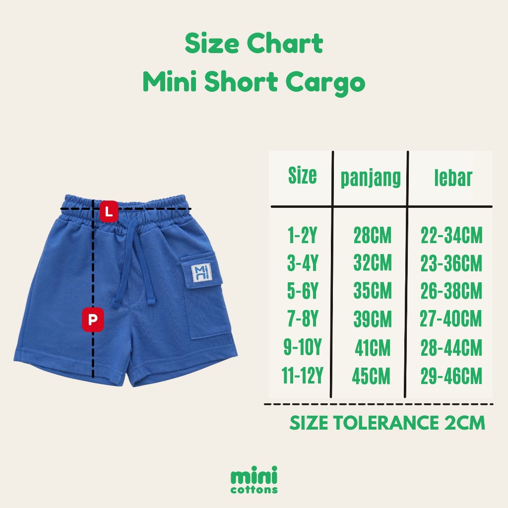 MINICOTTONS BOYS SHORT PANTS CELANA PENDEK CARGO ANAK LAKI LAKI 2-12 TAHUN